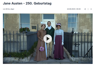 In einer ZDF-Reportage zum Jane Austen Festival Bath 2025 bin ich mit meinen genähten Gewändern zu sehen (und zu hören). Dies war eine großartige Gelegenheit und neue Erfahrung. Das Festival war mal wieder wunderbar dieses Jahr:
